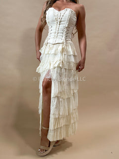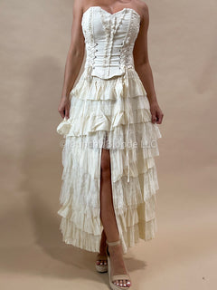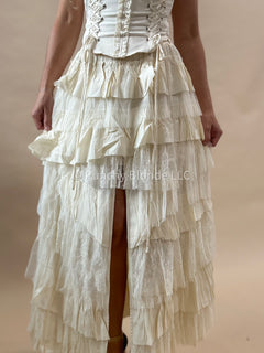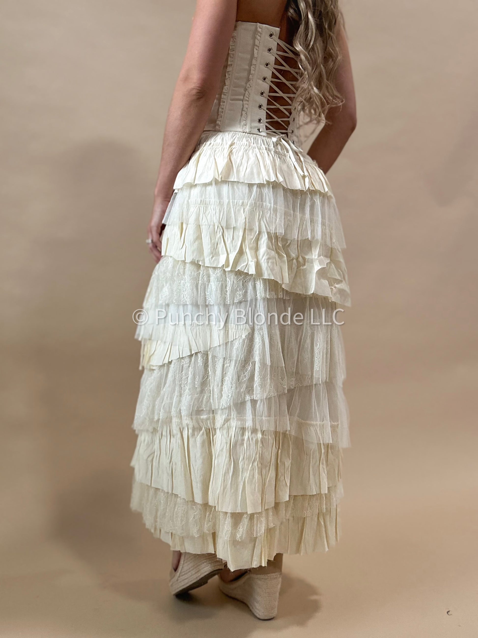 Elastic waistband, lace tiered, lined, maxi length