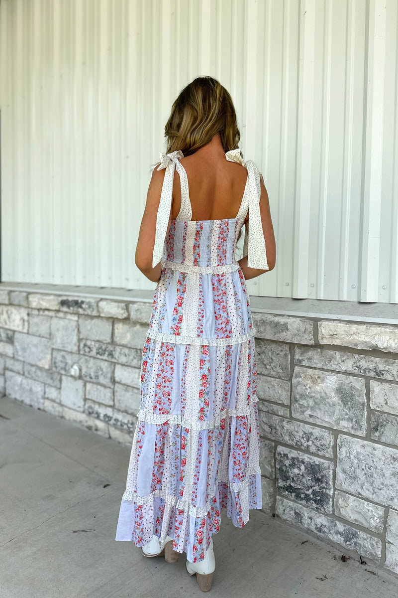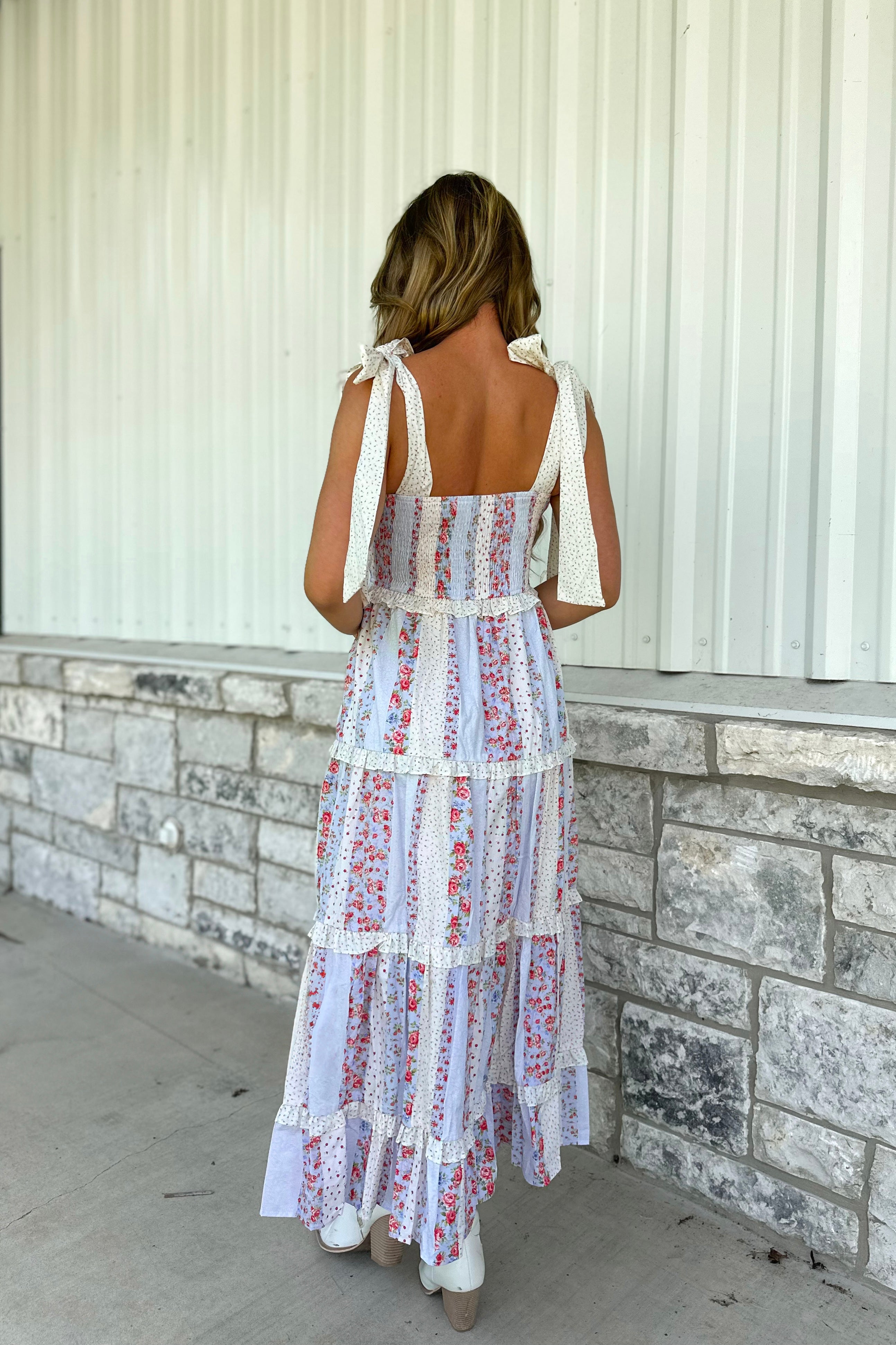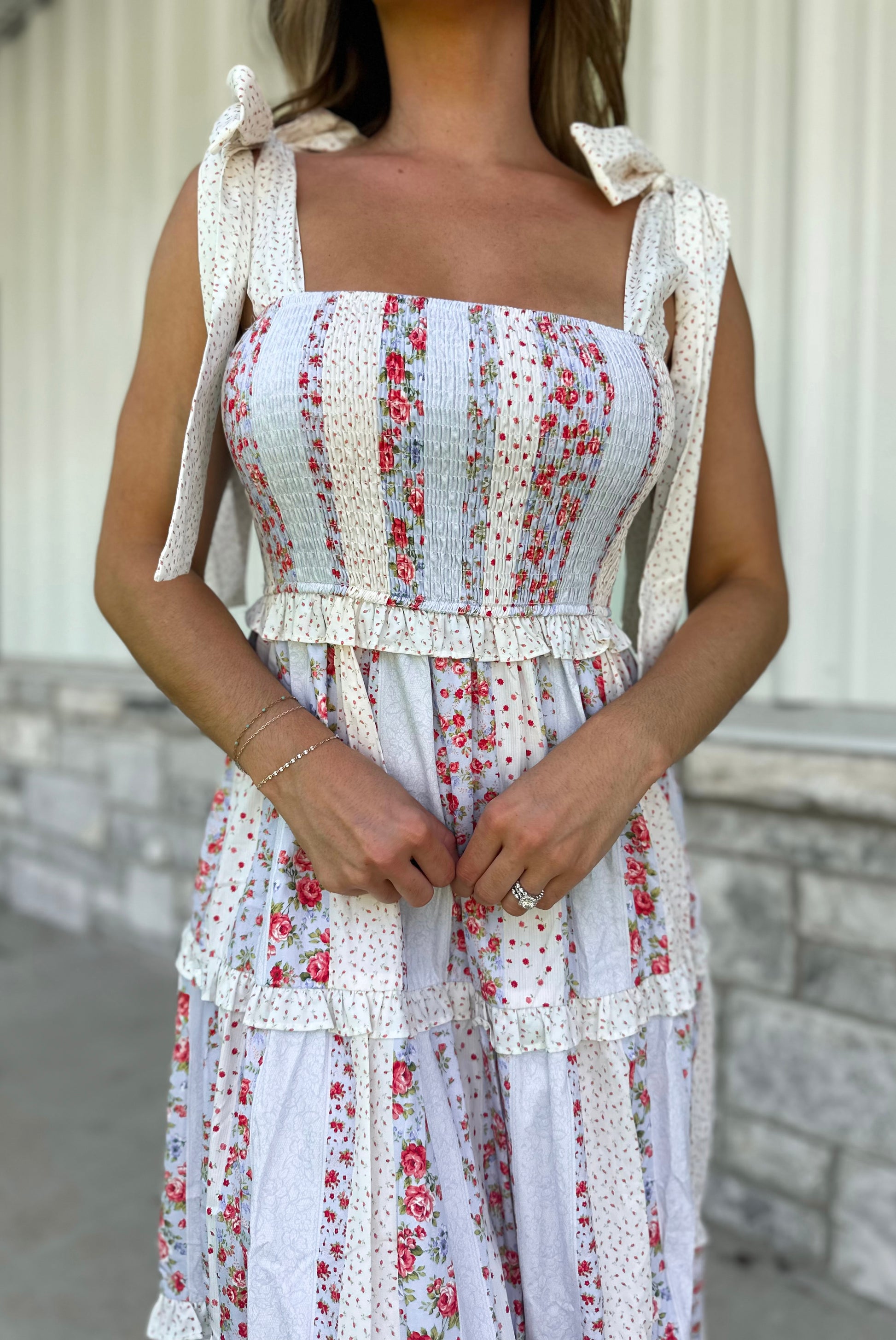 Lined, ruffle tiered, maxi dress, floral print, has pockets
