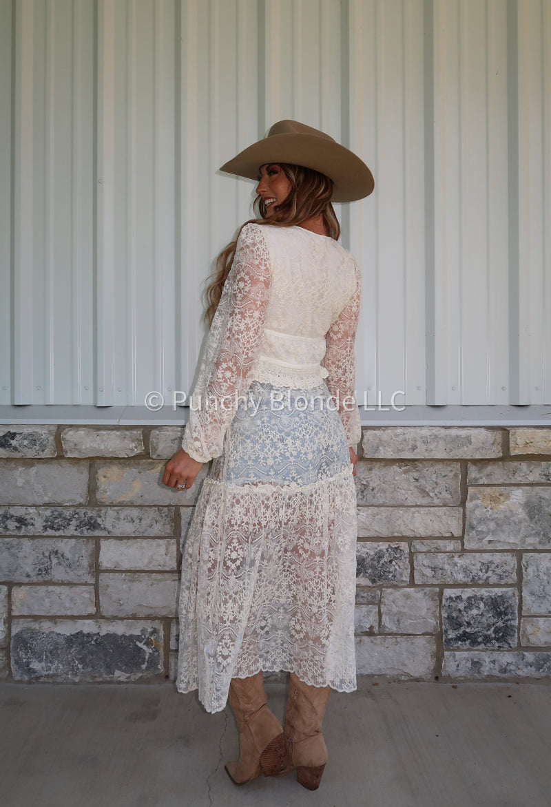 Sheer embroidered fabric, lined bodice, long puff sleeves