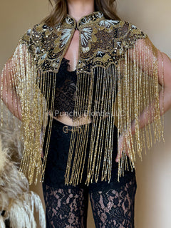 Hand beaded mesh cape