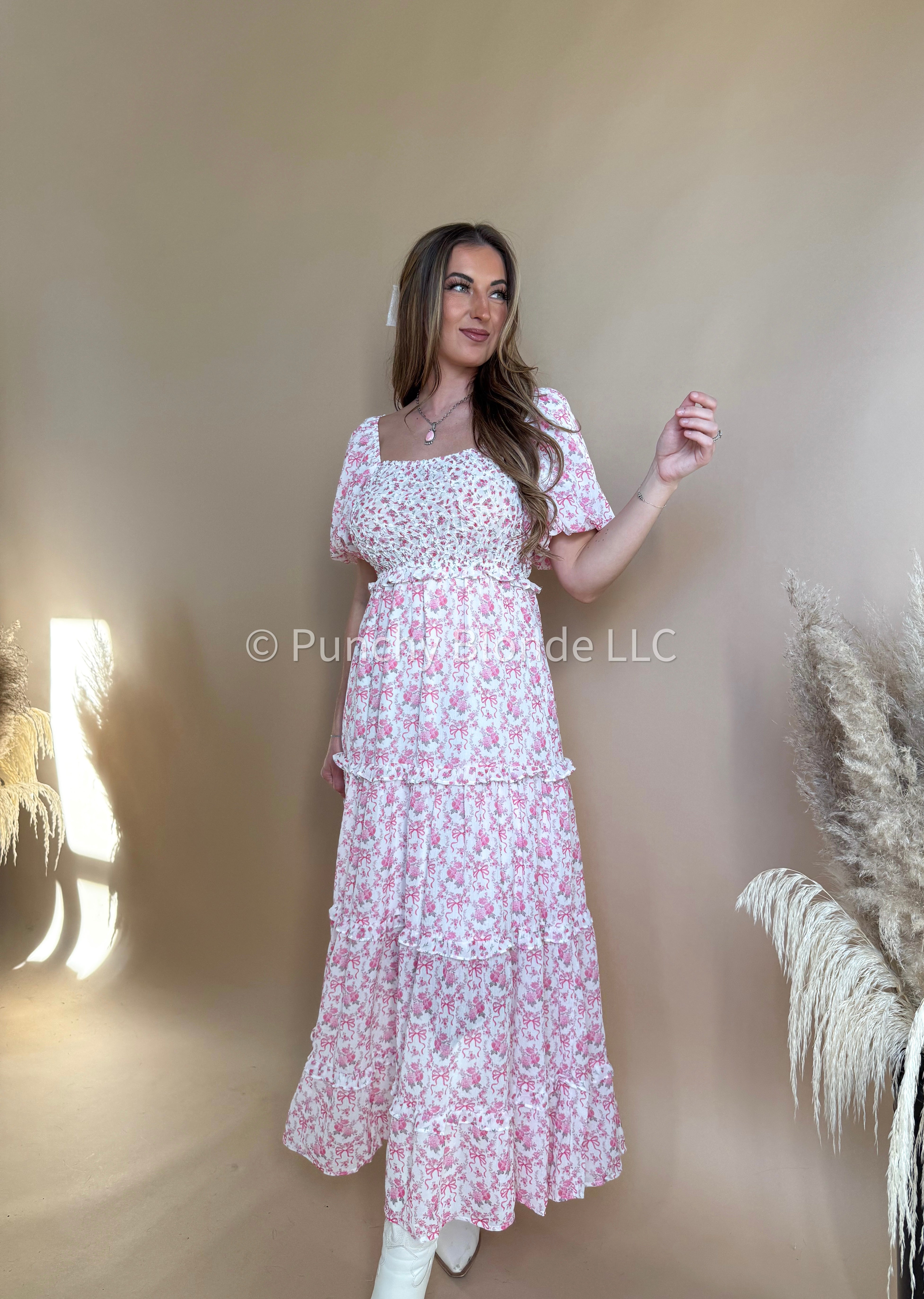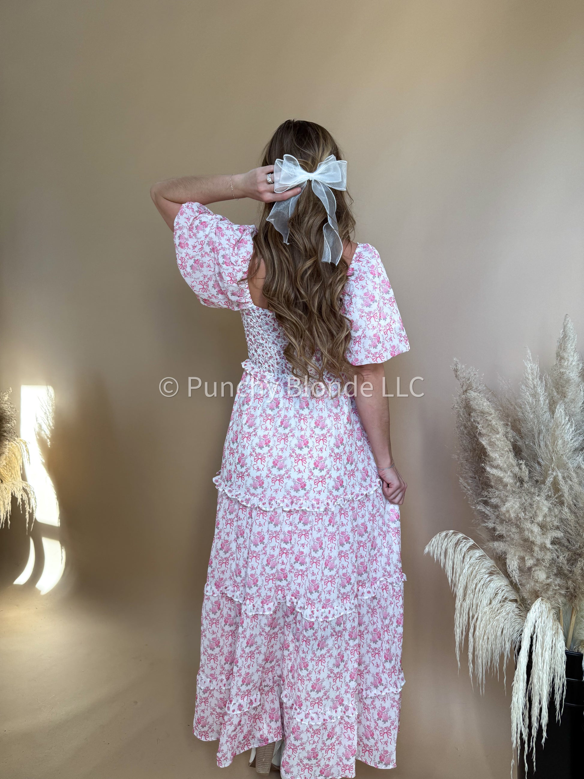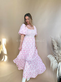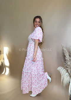 Lined, ruffle tiered, maxi dress, floral patchwork print