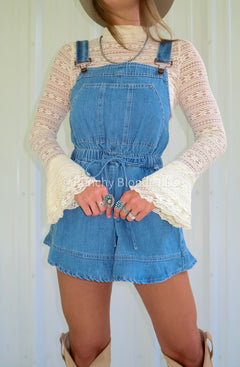 Long double ruffle, bell sleeve cuff, relaxed fit
